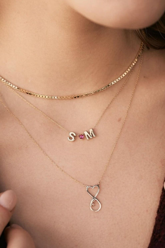 Birthstone Initial Outline Necklace