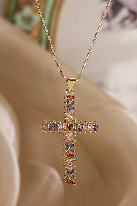 Colored Diamond White Stone Cross Vintage Pendant Necklace