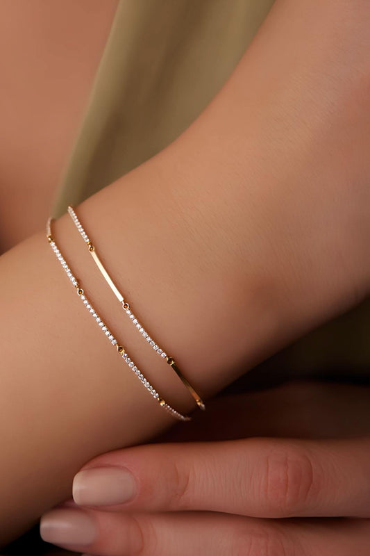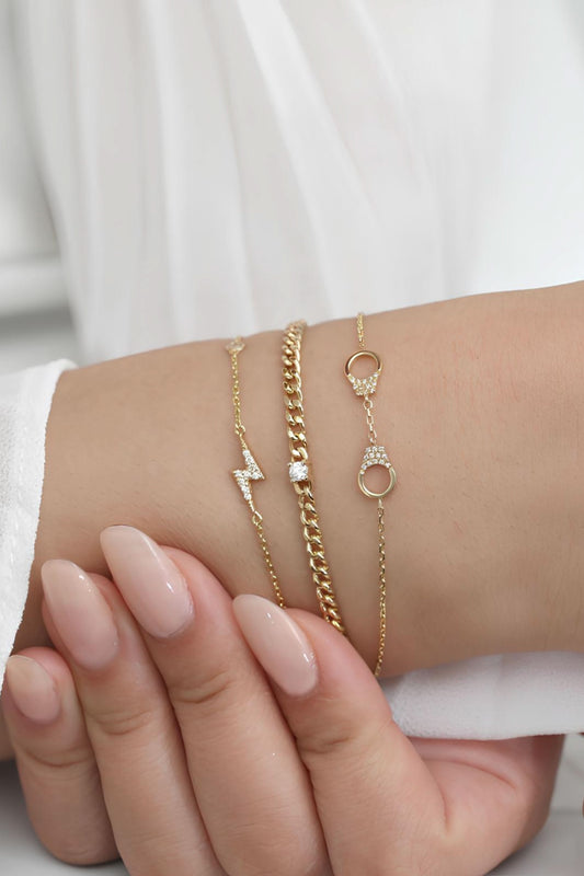 Cuban Curb Link Tiny Diamond Chain Bracelet