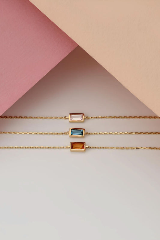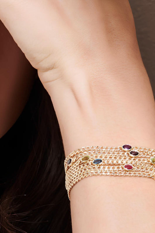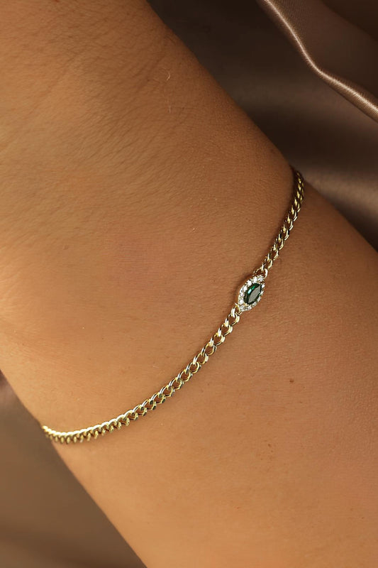 Link Chain Bracelet with Bezel Setting Oval Shape