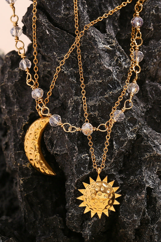 3-layer stacked sun and moon necklace