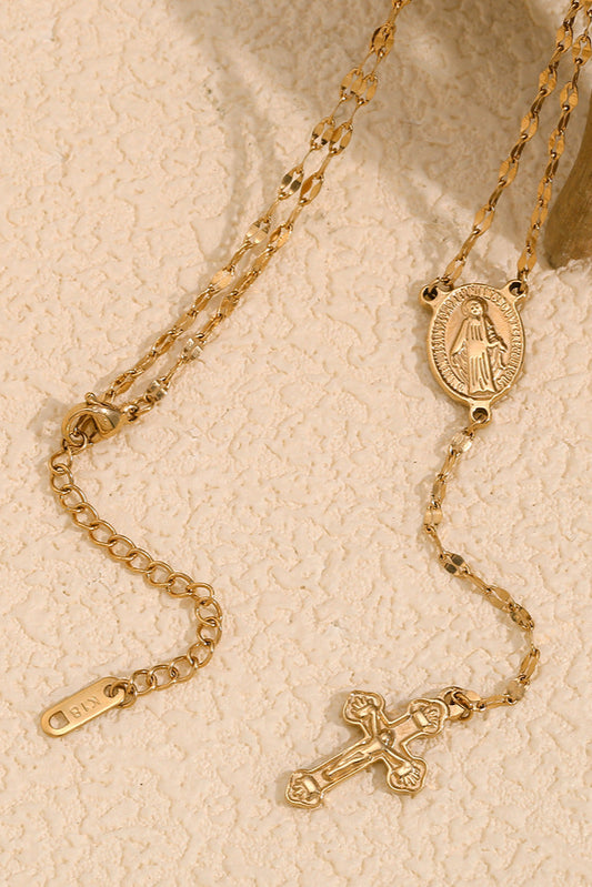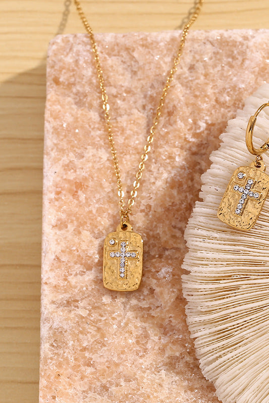Round Disc Cross Diamond Eagle Pendant Necklace